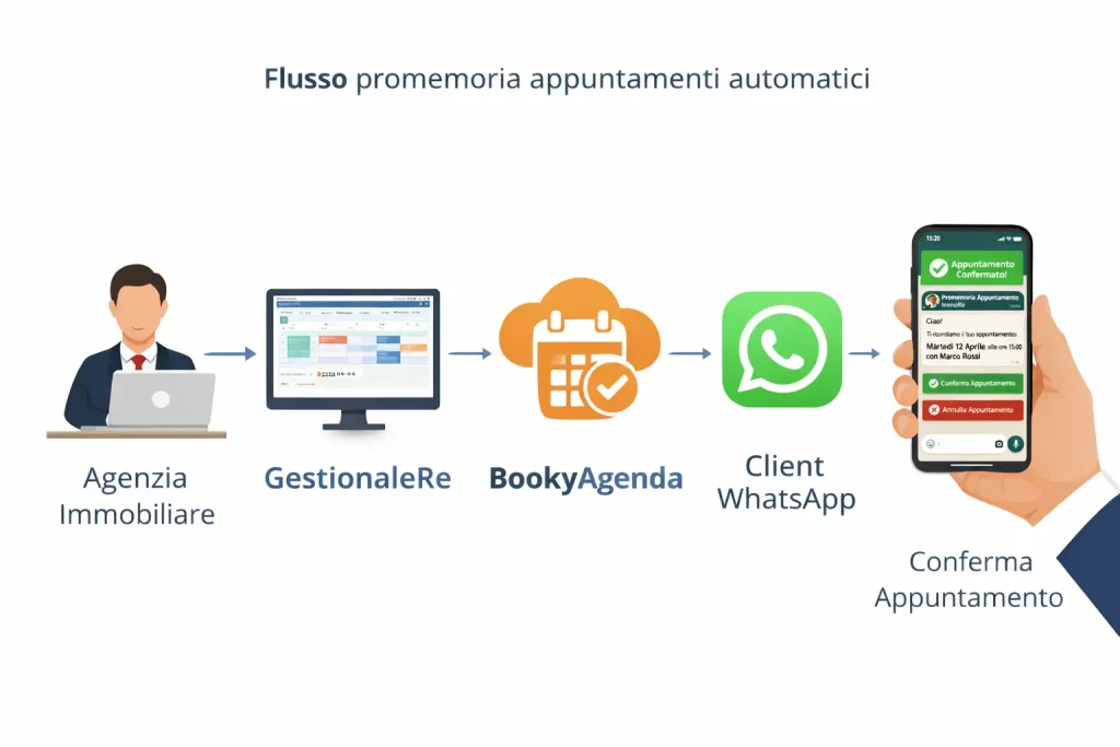 Promemoria appuntamento WhatsApp inviato automaticamente dal gestionale immobiliare GestionaleRe integrato con BookyAgenda